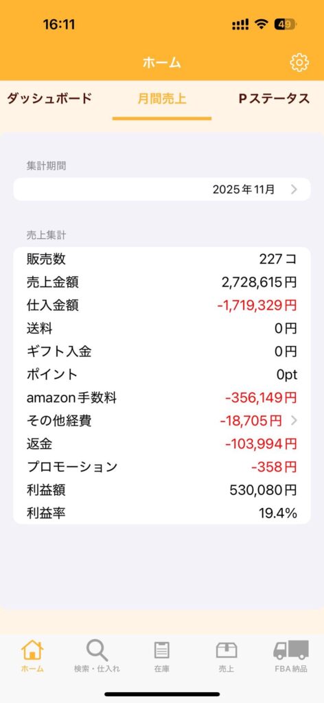 ※スクショ内では月利447万になっていますが、Amazon刈り取りでの月利は90万です