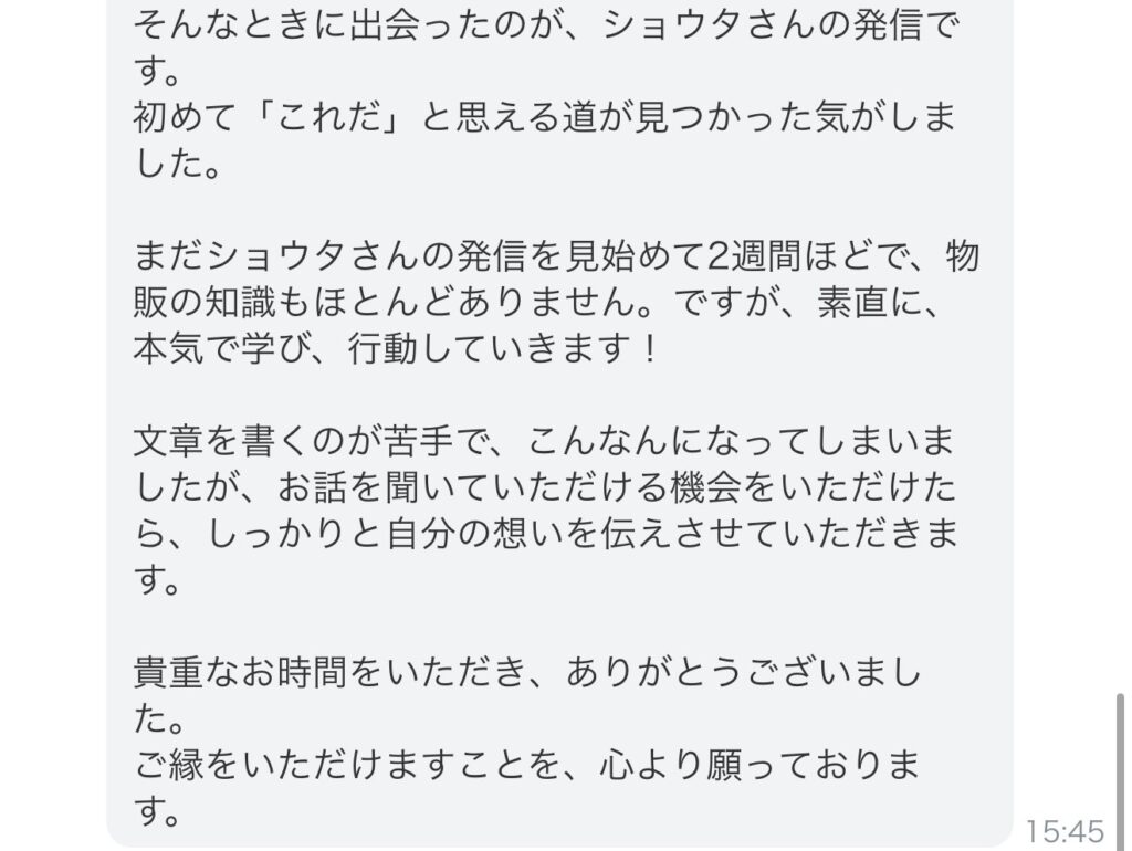 「自分の中でずっとくすぶっていた何かが、一気に火がついた」と俺の動画を見て感想をくれたときは熱量がすごい人だなって印象を受けた。