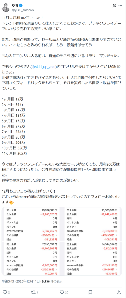 ⑧ゆるさん【1日4時間Amazon刈り取りのみで月利200万安定】