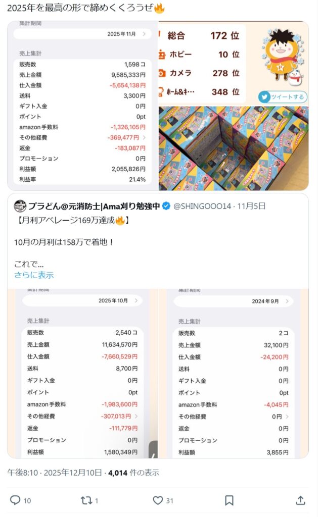・1日4時間Amazon刈り取りのみで月利200〜300万安定